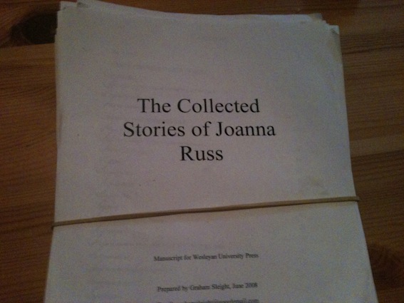 1. […] Sleight tells us about the book project he has been working on for the last couple of years, the collected short stories of Joanna Russ: Perhaps I should explain. In, I think, 2006 or 2007, Farah Mendlesohn very kindly asked me to […]